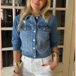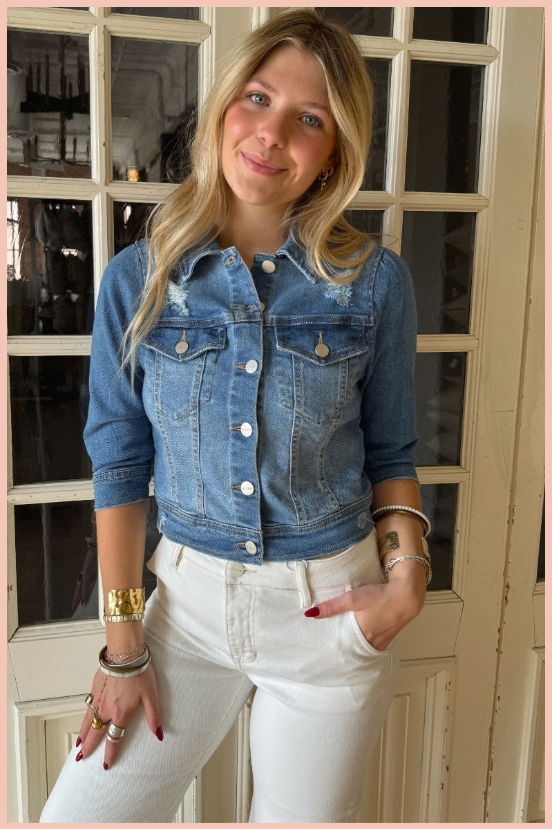 Introducing our Shirring Sleeve Cropped Denim Jacket - the perfect addition to your wardrobe! The shirring sleeves add a playful touch to this classic denim jacket, making it a statement piece that will elevate any outfit. Stay stylish and comfortable with this must-have jacket.