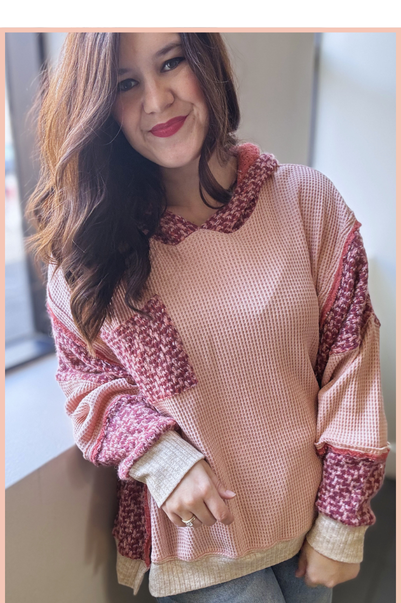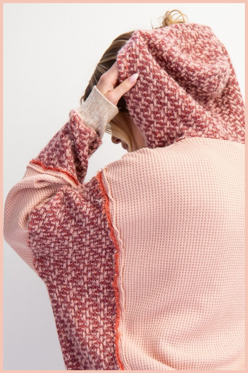 Get cozy in this playful Longsleeve Mixed Thermal Hoodie! Featuring different fabrics to spice up your hoodie game. (Warmly stylish, thermal fabrics keep you comfortable all day!)