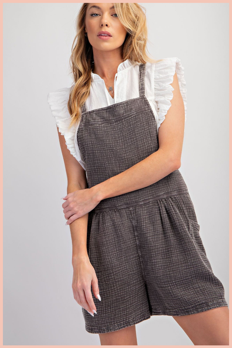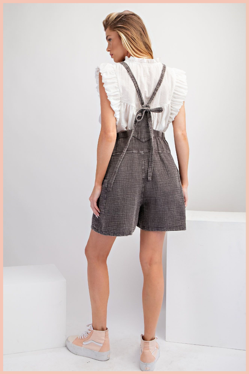 Mineral Washed Cotton Gauze Short Overalls | Final Sale