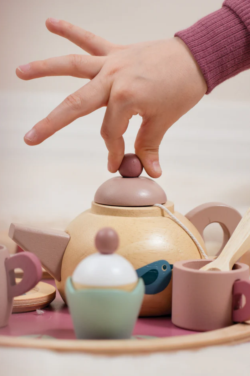 Experience a delightful afternoon tea with the Birdie Afternoon Tea Set from Tender Leaf. Each tea set features a charming bird motif on the saucers and teapot, adding a touch of whimsy to your tea time. Complete with cups, saucers, teaspoons, milk jug, and tray, this wooden set provides everything you need for a picture-perfect tea party.