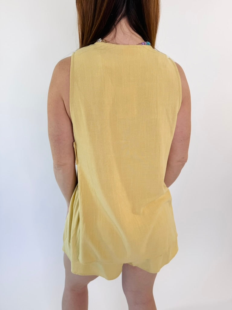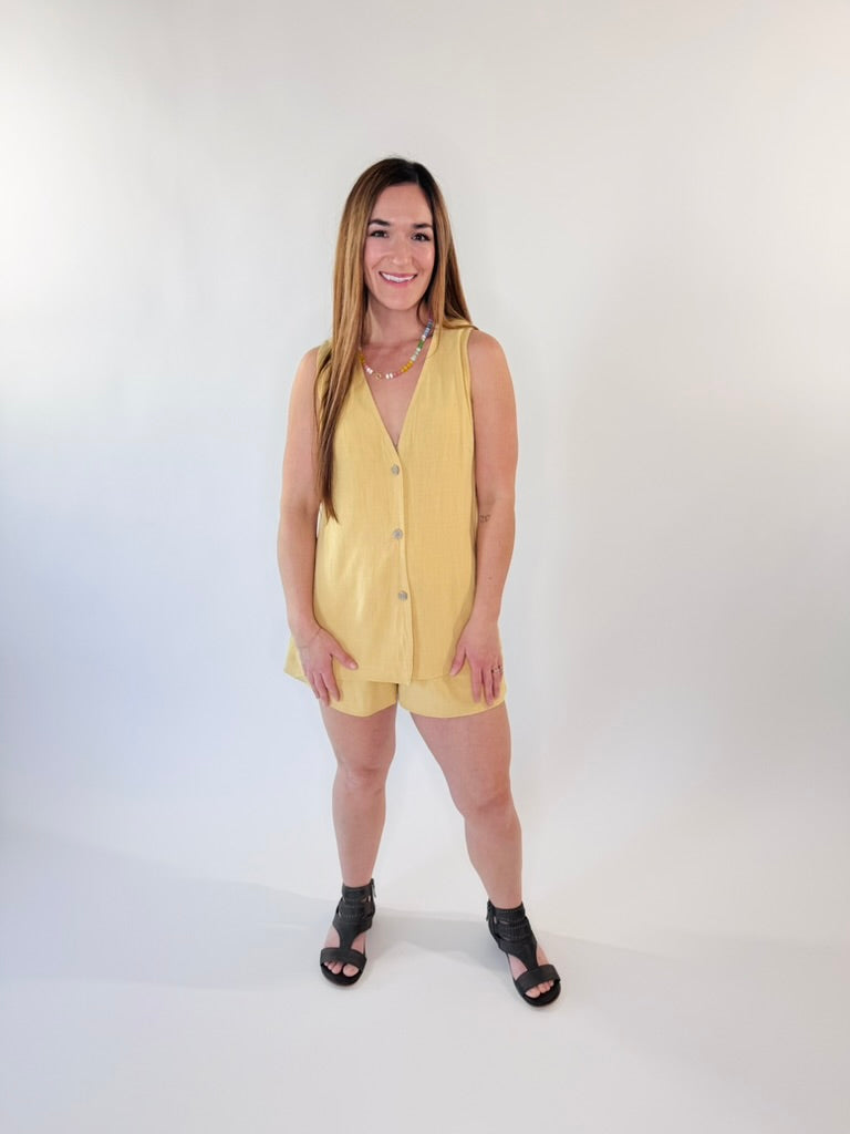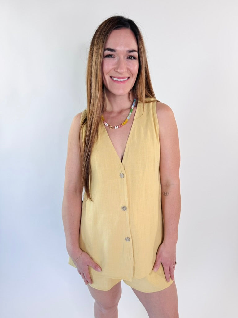 Sunlit Stroll Linen Button Vest Top
