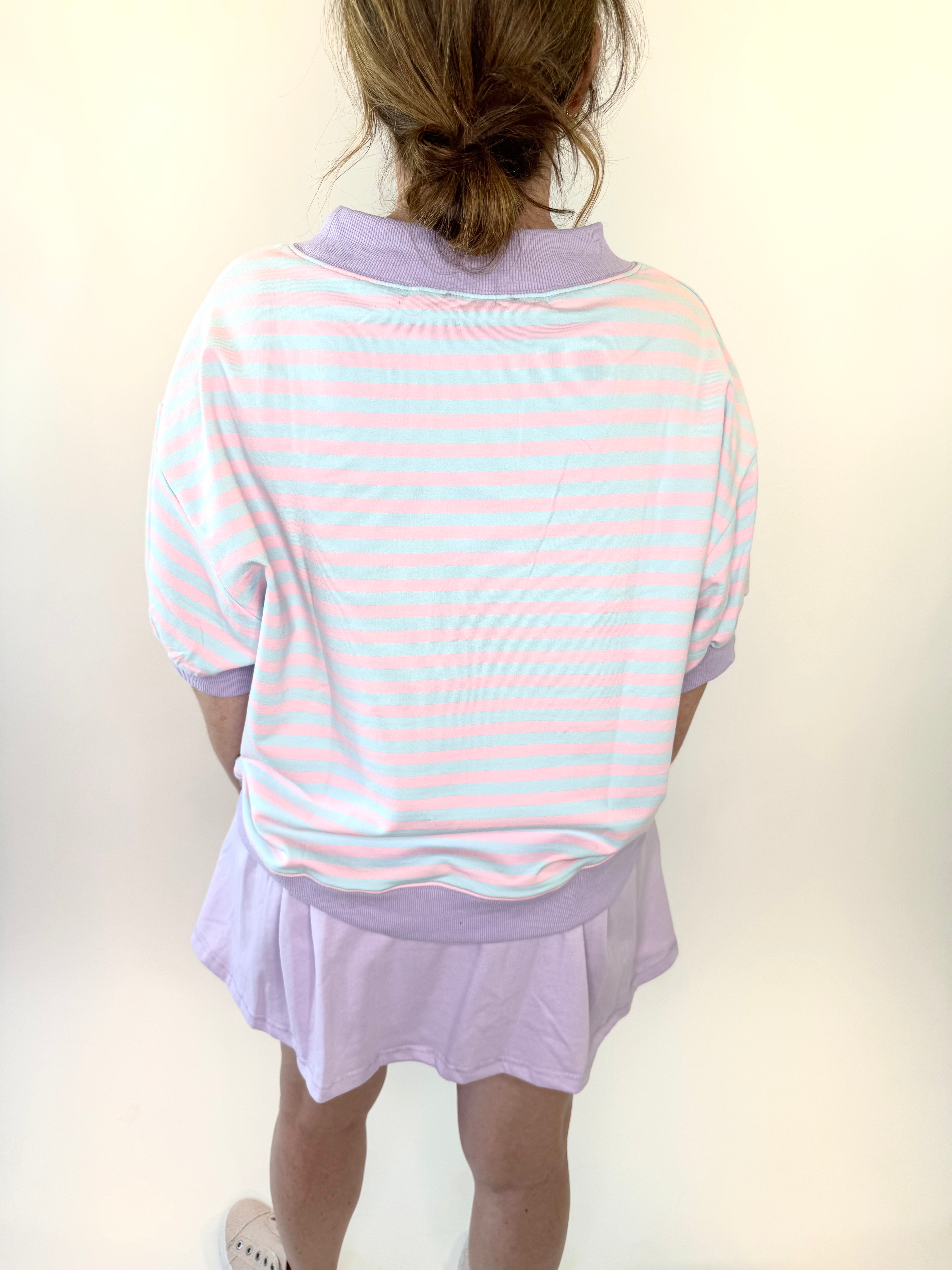Mock Neck Striped Lounge Sweatshirt w/ 3/4 Sleeves