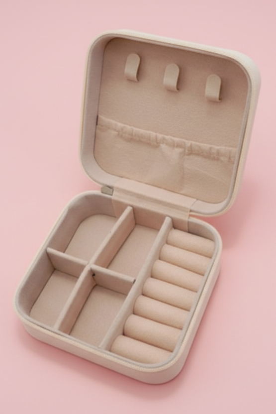 Inside, you’ll find ring rolls, divided storage sections, and necklace hooks to keep everything neatly in place. The secure zipper closure ensures your jewelry stays protected while you’re on the move—because messy jewelry bags are officially cancelled 💅