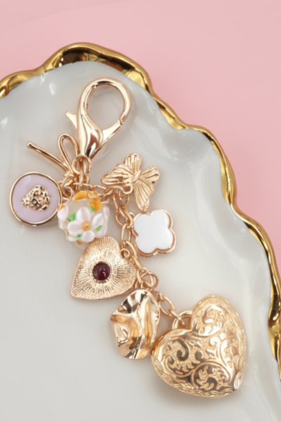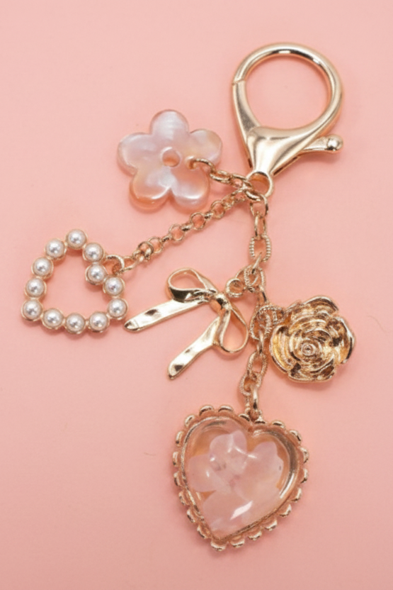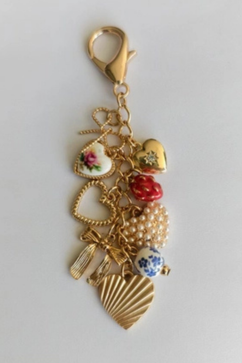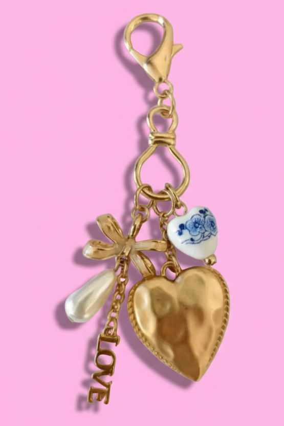 Porcelain Bows Hearts Pearl Strawberry Bag Key Charm