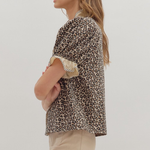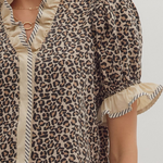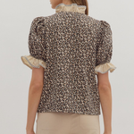 Leopard Print Puff Sleeve Top + Ruffled Neckline