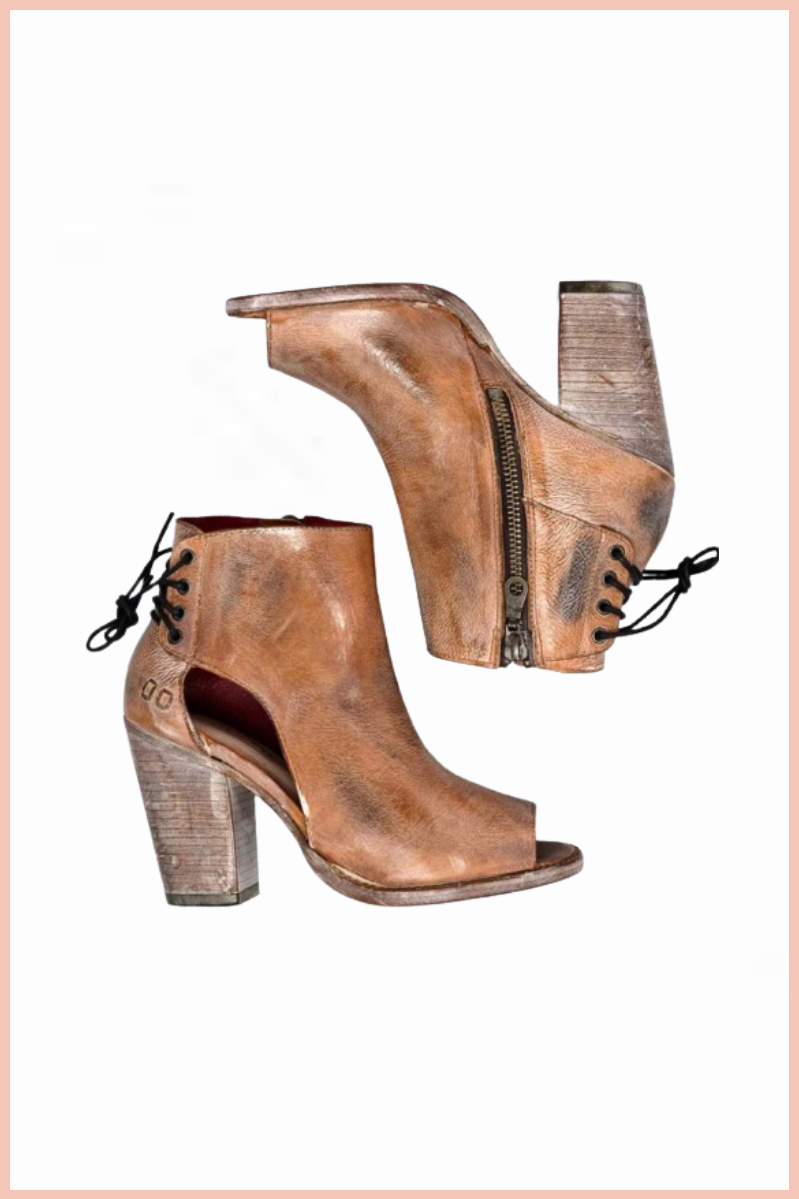 Oh ladies, have you seen ANGELIQUE? Oh my, isn’t she a temptress! ANGELIQUE is a leather heeled peep-toe with a perfectly placed cut-out and feminine back lacing. Lined in red leather with an inner zip for ease, ANGELIQUE is a sharp transitional heel that will keep you looking flirty from season to season.
