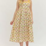 Botanical Print Tie Strap Midi Dress