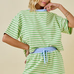 Meet your new go-to comfy-cute tee. This boxy terry short sleeve top is the perfect blend of relaxed and polished, with a fun contrast neckline that gives it that extra pop. The honeydew and periwinkle color combo feels fresh, playful, and effortless — the kind of piece you’ll reach for on repeat.
