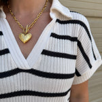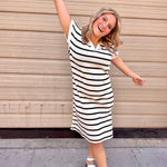 Get ready to take on the day in style with our Collared Striped Knit Midi Dress! This fun and playful dress features an oversized collared neckline, perfect for making a statement. The split neck and short folded sleeves add a touch of flair, while the side slit provides a flattering fit. Look effortlessly chic with this dress!