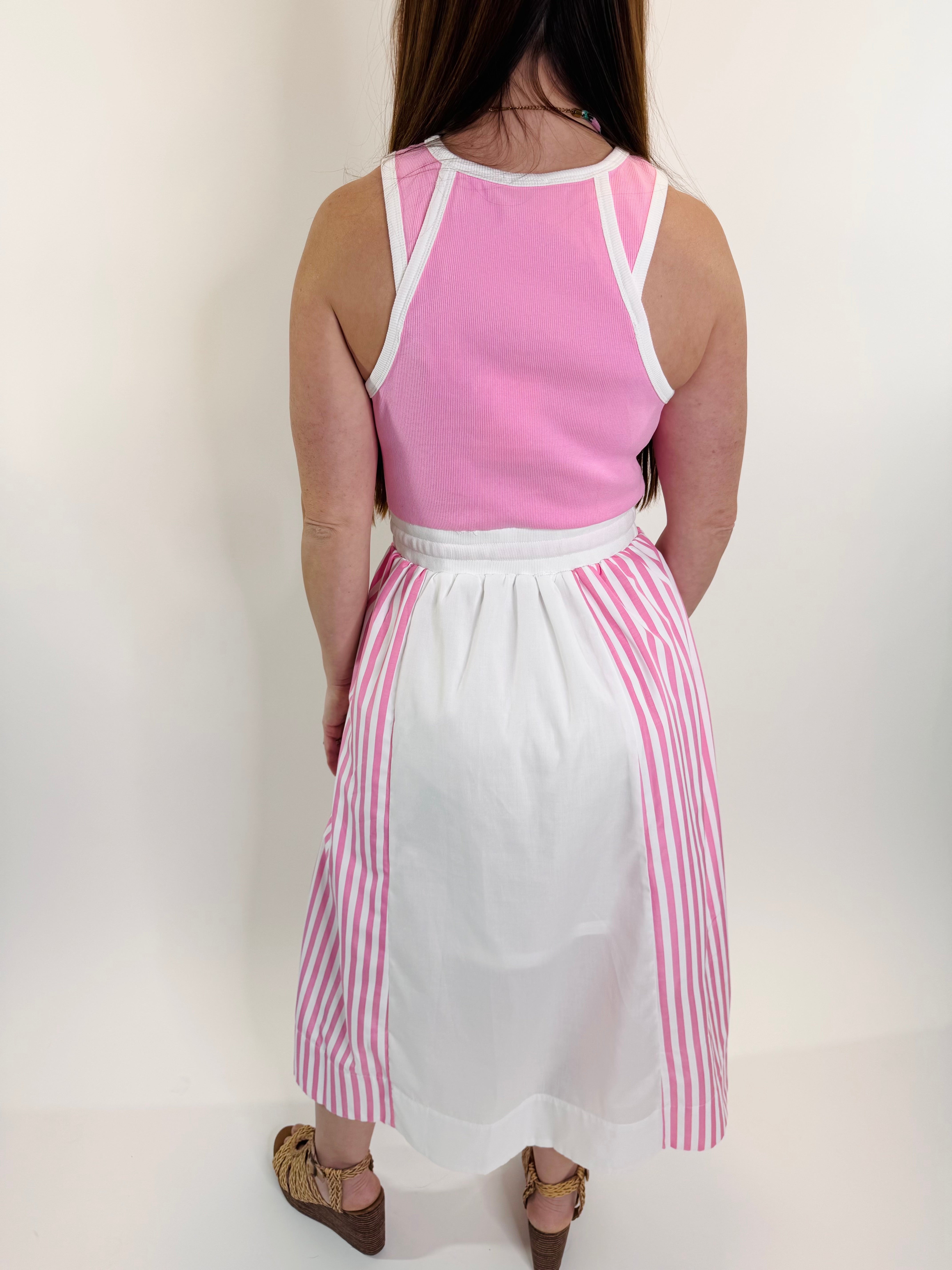 Pink and white striped skirt