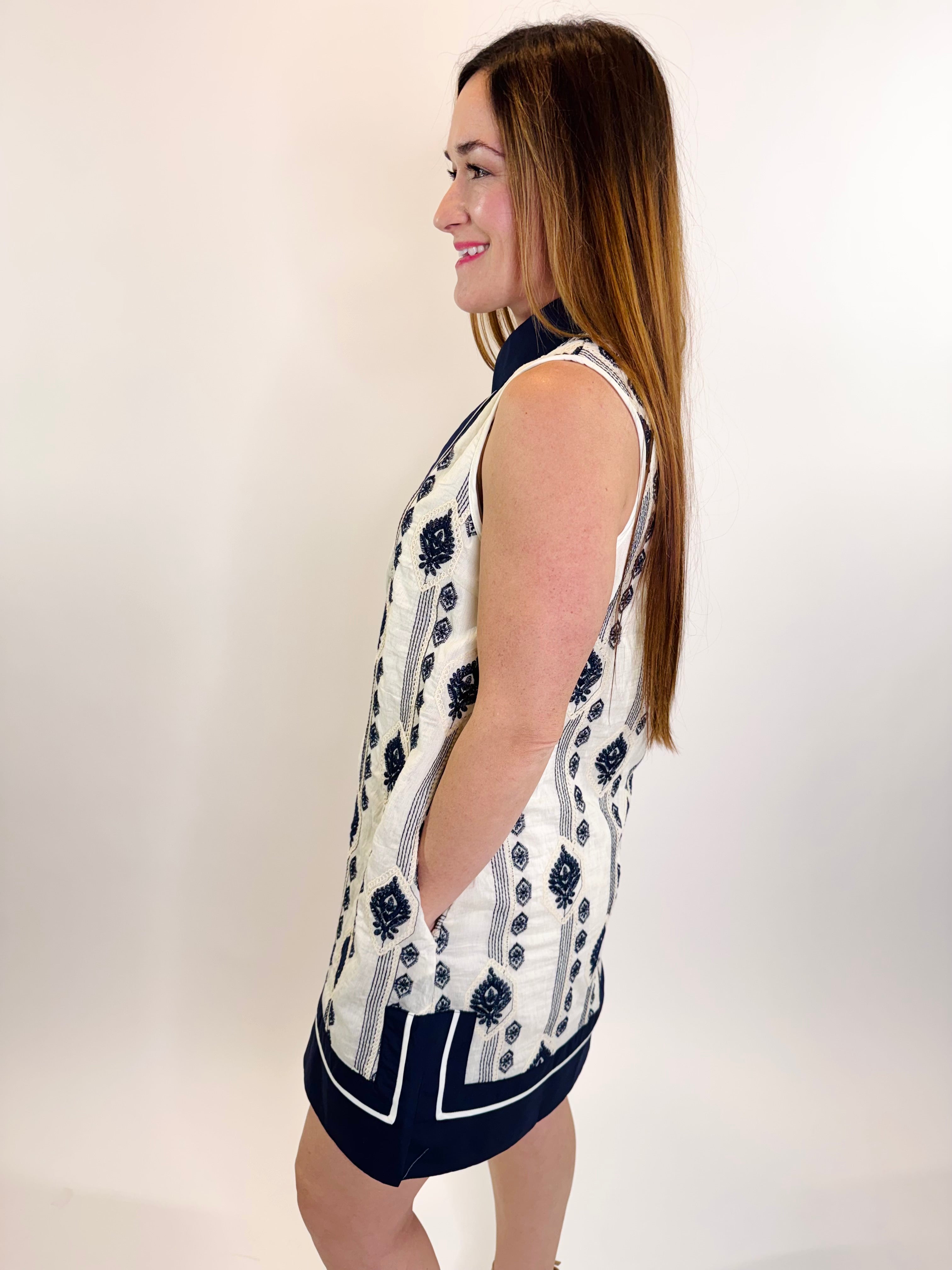 Chic, effortless, and full of detail, the Embroidered Motif Sleeveless Mini Dress is the perfect warm-weather staple. Designed with delicate embroidered motifs and a flattering sleeveless silhouette, this mini dress brings an elevated touch to everyday style.