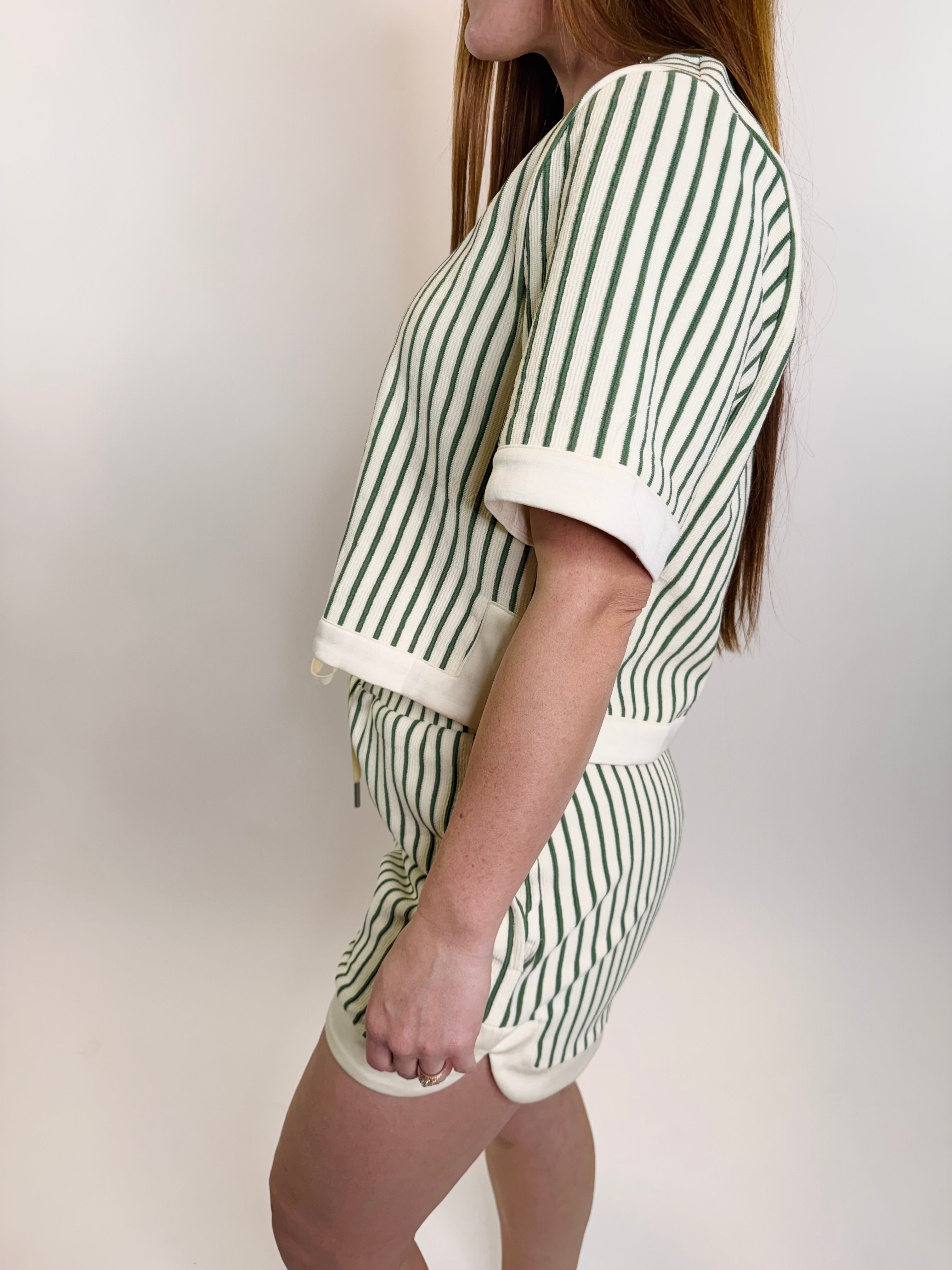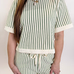 Classic, sporty, and effortlessly chic, the Clubhouse Stripe Knit Top is the perfect blend of preppy polish and everyday comfort. Featuring timeless stripes with contrast trim along the round neckline, sleeve cuffs, and hem, this lightweight knit top brings country-club style to your casual wardrobe.