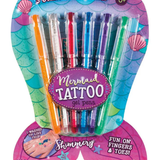 Discover the magic of temporary tattoos with Mermaid Tattoo Gel Pens! The best-selling Toysmith tattoo pens feature a mermaid theme and dry in seconds. Perfect for parties and gifts, these glittery pens come in a set of 6 vibrant colors and are easily removable with warm soap and water. Keep them fresh with replaceable caps.