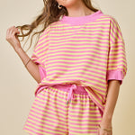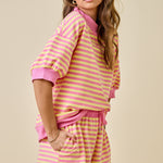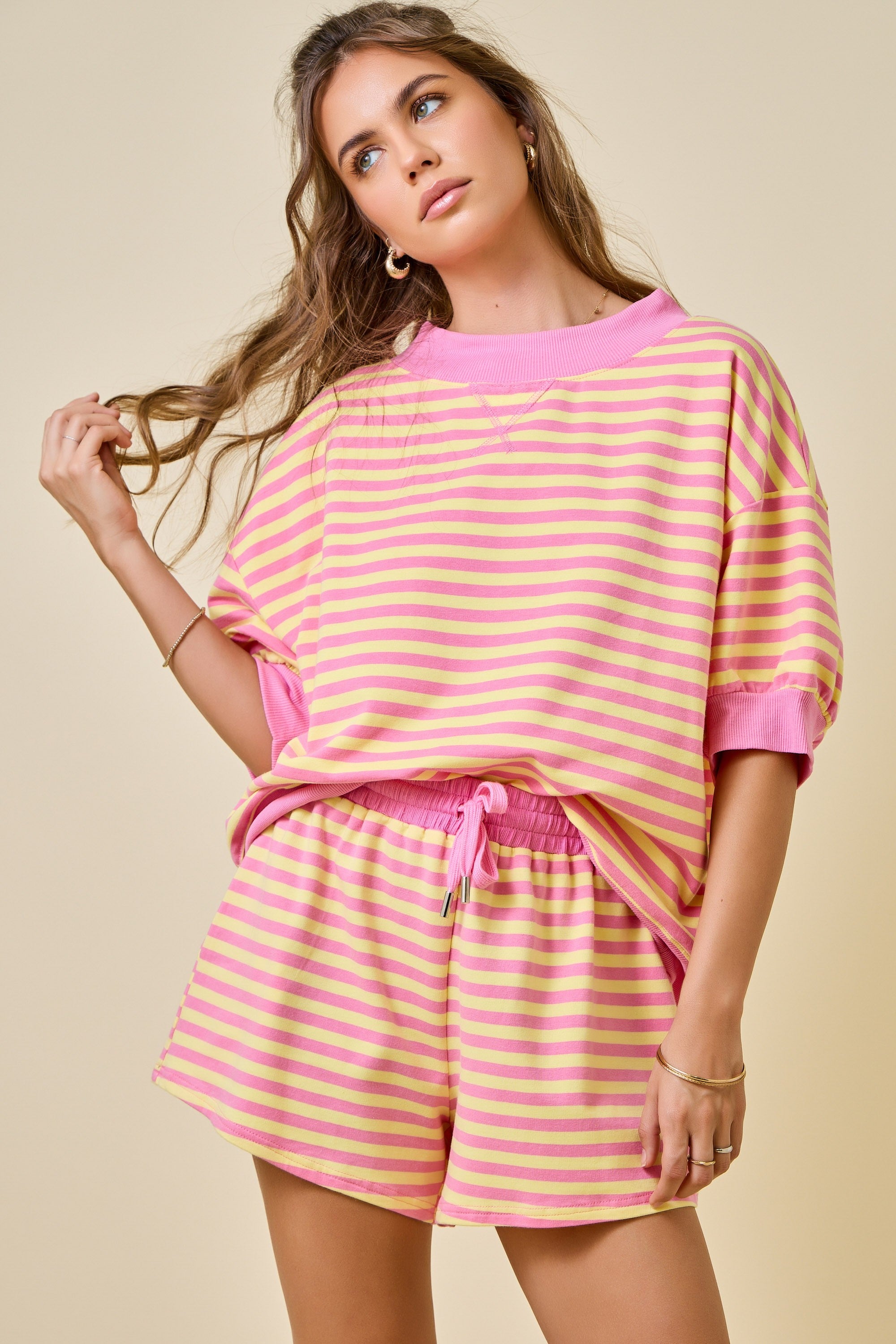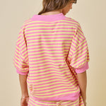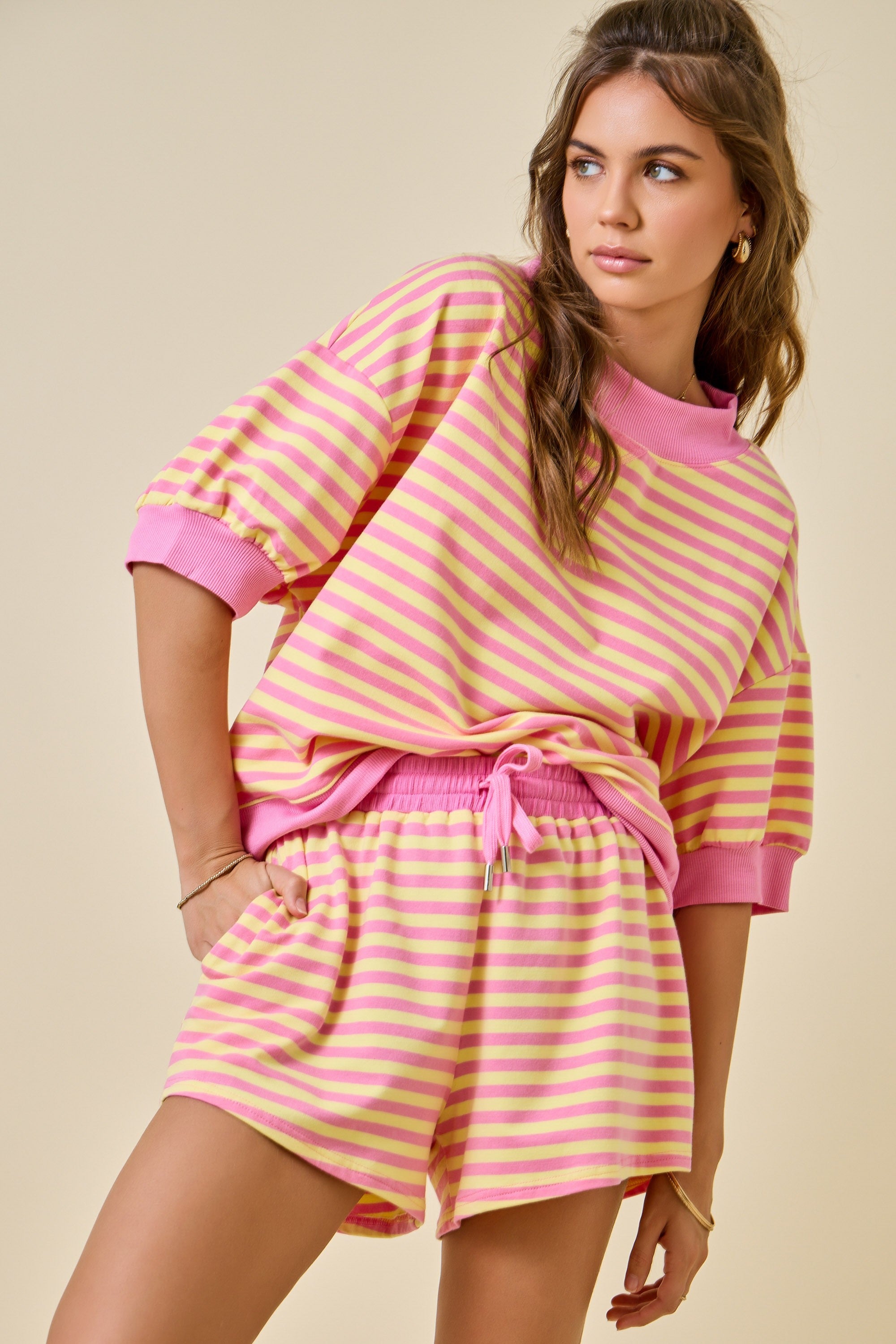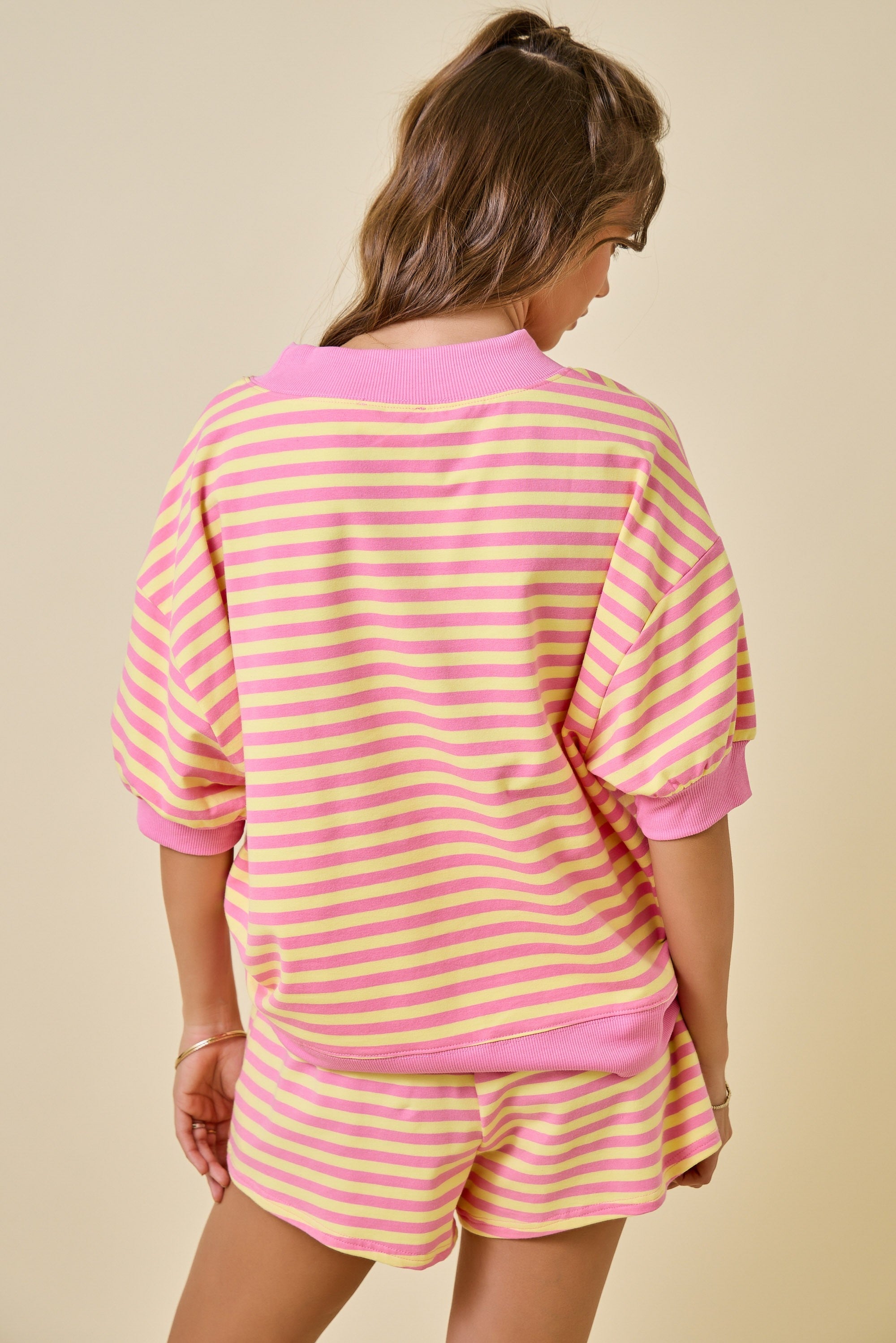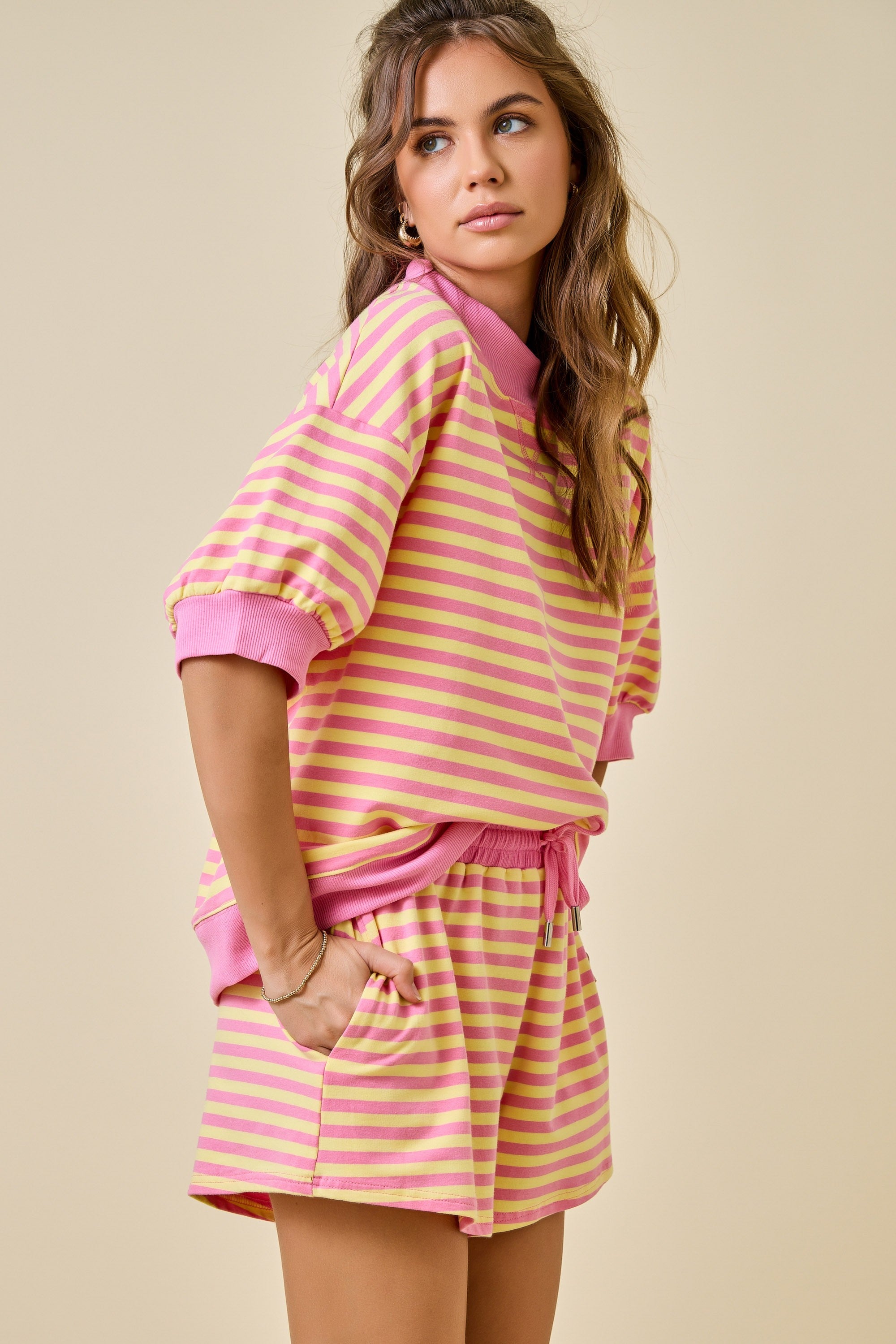 Mock Neck Striped Lounge Sweatshirt w/ 3/4 Sleeves