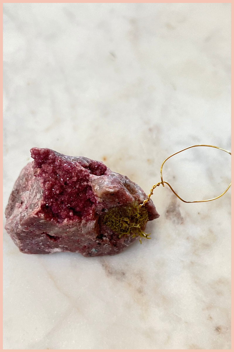 This pink calcite and air plant holder will bring a touch of fun and playfulness to any space. The natural elements of the pink calcite and air plant will provide a calming and refreshing energy, making it a perfect addition to any home or office. Give your space a pop of color while improving the air quality with this beautiful and unique piece.