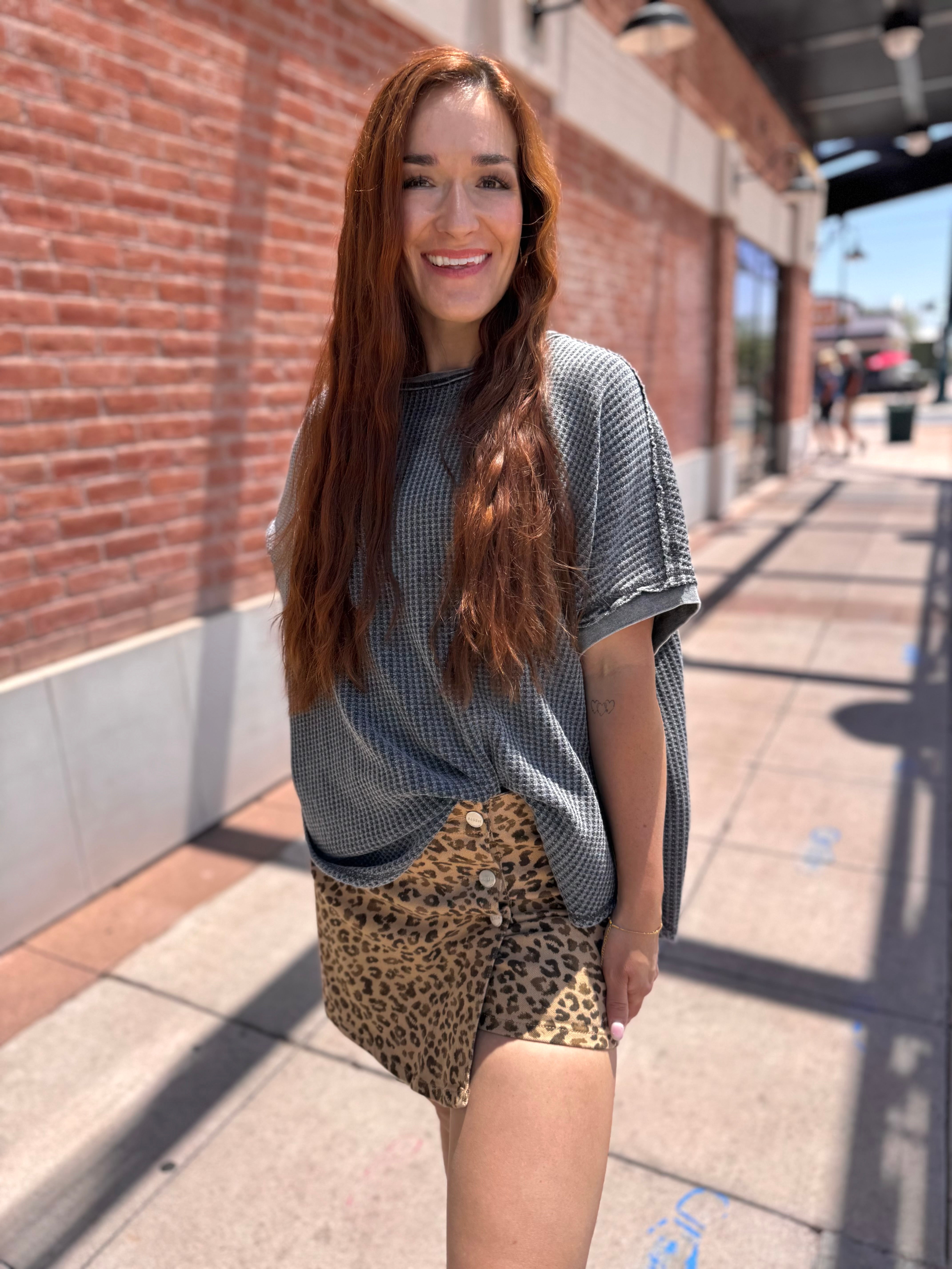 Unleash your wild side with our RISEN High Rise Button Down Skort! This fun, playful piece features a daring cheetah print and a high rise button down design, giving you the perfect blend of style and comfort. So go ahead and make a bold statement with this must-have addition to your wardrobe.