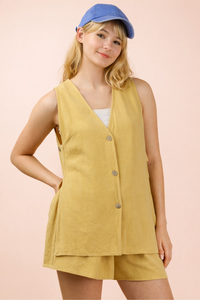 Designed to pair with the matching button vest top